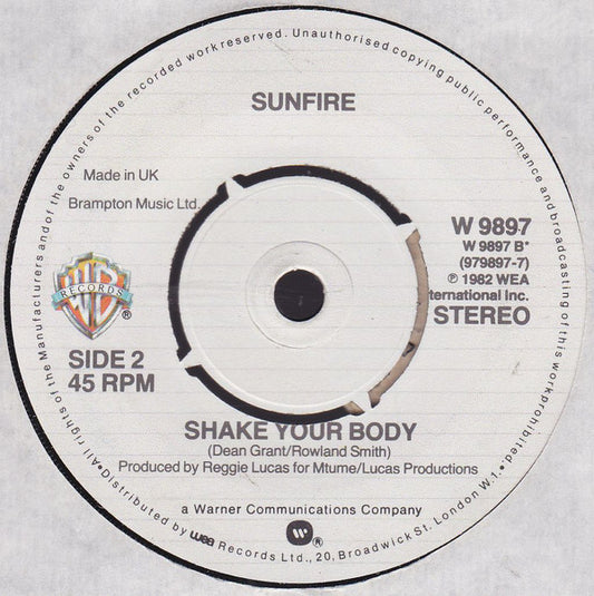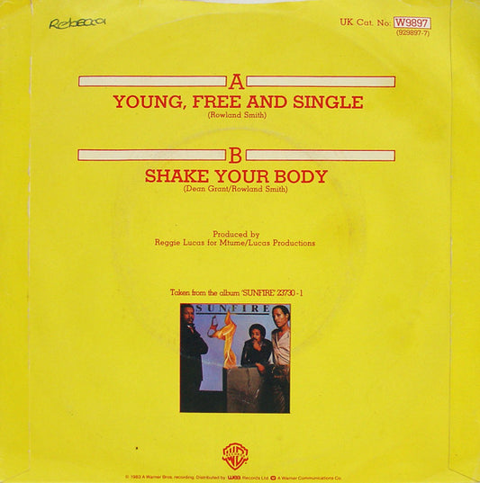 Sunfire - Young, Free And Single / Shake Your Body (7", Single, Kno) UK 1982 NM or M-