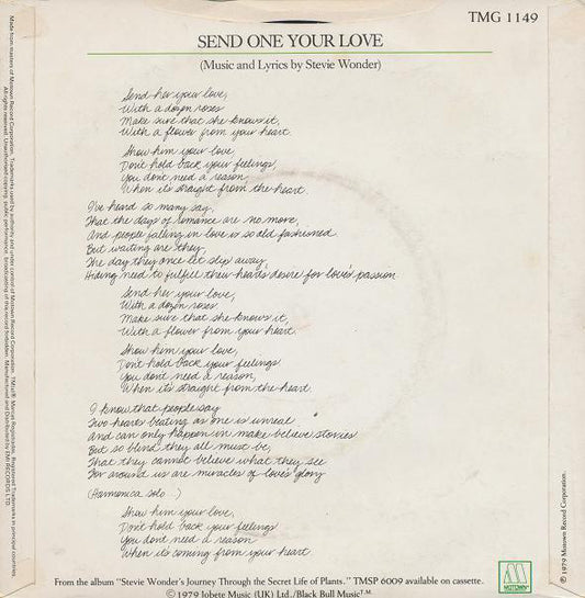 Stevie Wonder - Send One Your Love (7", Single) UK 1979 VG+
