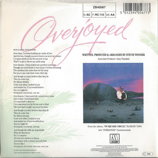 Stevie Wonder - Overjoyed (7") UK 1985 VG+