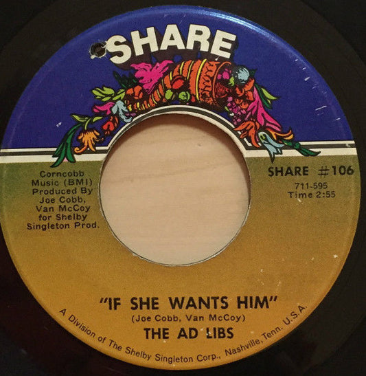 The Ad Libs - Nothing Worse Than Being Alone / If She Wants Him (7") US 1969 NM or M-