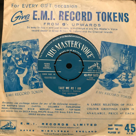 The Duprees - You Belong To Me / Take Me As I Am (7", Single, Mono) UK 1962 VG