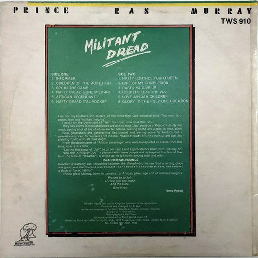 Prince Ras Murray - Militant Dread (LP, Album) UK 1977 VG+