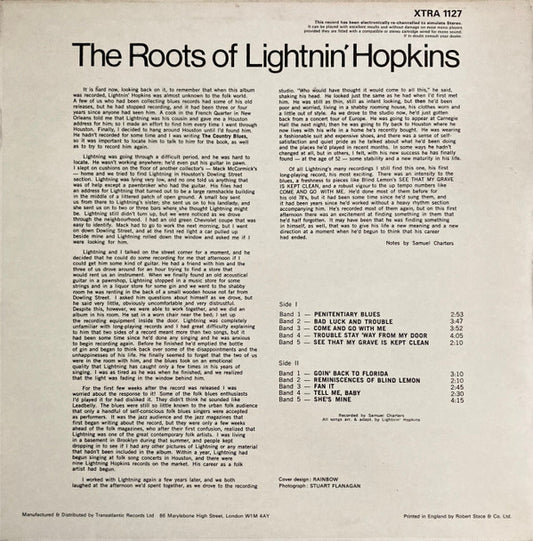 Lightnin' Hopkins - The Roots Of Lightnin' Hopkins (LP, Album, RE) UK 1972 VG+
