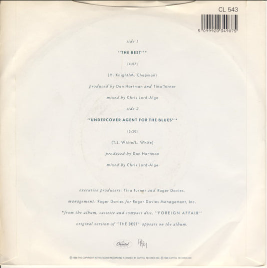 Tina Turner - The Best - UK 7" 1989 - VG+