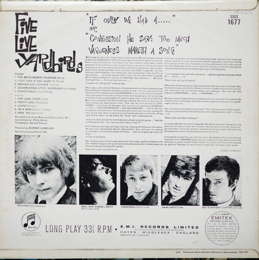 The Yardbirds - Five Live Yardbirds (LP, Album, Mono) UK 1964 VG+