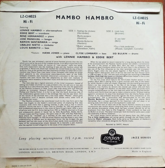 Lenny Hambro Featuring Eddie Bert - Mambo Hambro (10") UK 1956 VG