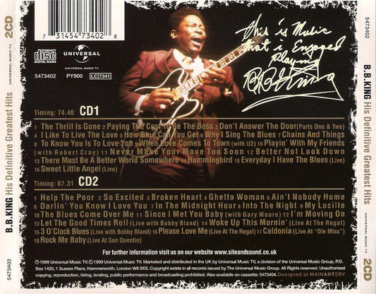 B.B. King - His Definitive Greatest Hits - UK 2xCD 1999 - VG+