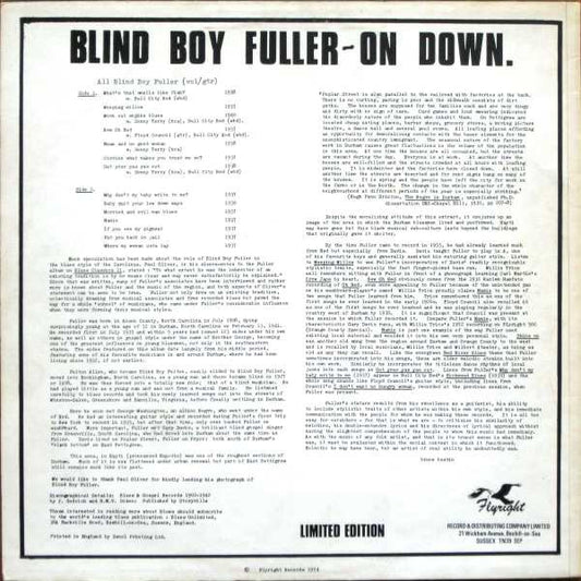Blind Boy Fuller - On Down. Vol. 1 (LP, Comp, Mono, Ltd, RP) UK 1974 NM or M-