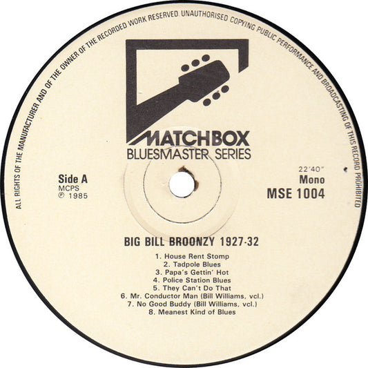 Big Bill Broonzy - Big Bill Broonzy 1927-32: Mostly New To LP (LP, Comp, Mono, RM) UK 1985 NM or M-