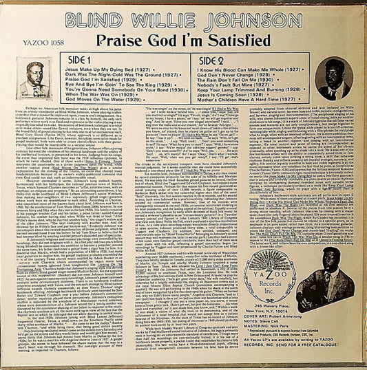 Blind Willie Johnson - Praise God I'm Satisfied (LP, Comp, RP) US 0 NM or M-