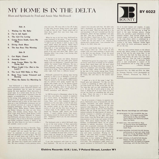 Fred And Annie Mae McDowell - My Home Is In The Delta (LP, Album) UK 1966 VG+