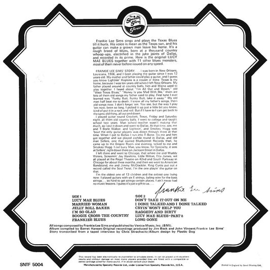 Frankie Lee Sims - Lucy Mae Blues (LP, Album, RE) UK 1974 VG+