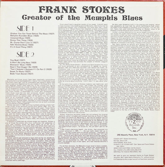 Frank Stokes - Creator Of The Memphis Blues (LP, Comp, Red) US 1977 NM or M-