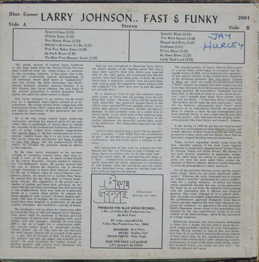Larry Johnson - Fast & Funky (LP, Album, RE, Ora) US 1971 VG+