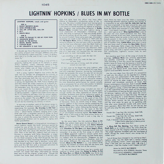 Lightnin' Hopkins - Blues In My Bottle (LP, Album, RE) US 1984 NM or M-