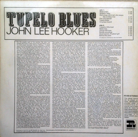 John Lee Hooker - Tupelo Blues (LP, Album, RE) UK 1969 NM or M-