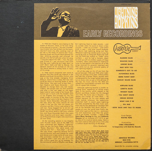Lightnin' Hopkins - Early Recordings (LP, Album, Comp, RE) US NM or M-