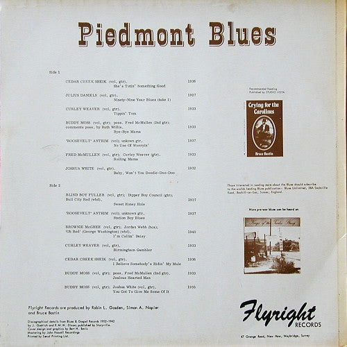 Various - Piedmont Blues (LP, Comp) UK 1972 NM or M-