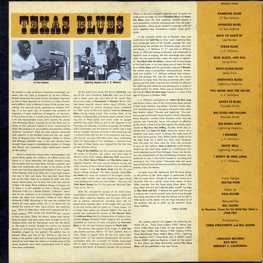 Various - Texas Blues Volume 1 (LP, Comp) US 1963 VG+