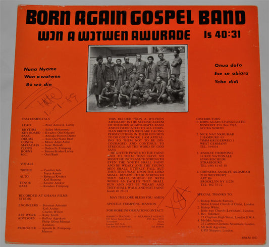 Born Again Gospel Band - Wɔn A Wɔtwen Awaurade Is 40:31 (LP) Ghana VG+