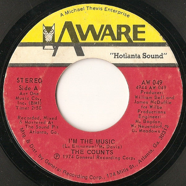 The Counts - I'm The Music / At The Fair (7", Styrene) US 1974 VG+